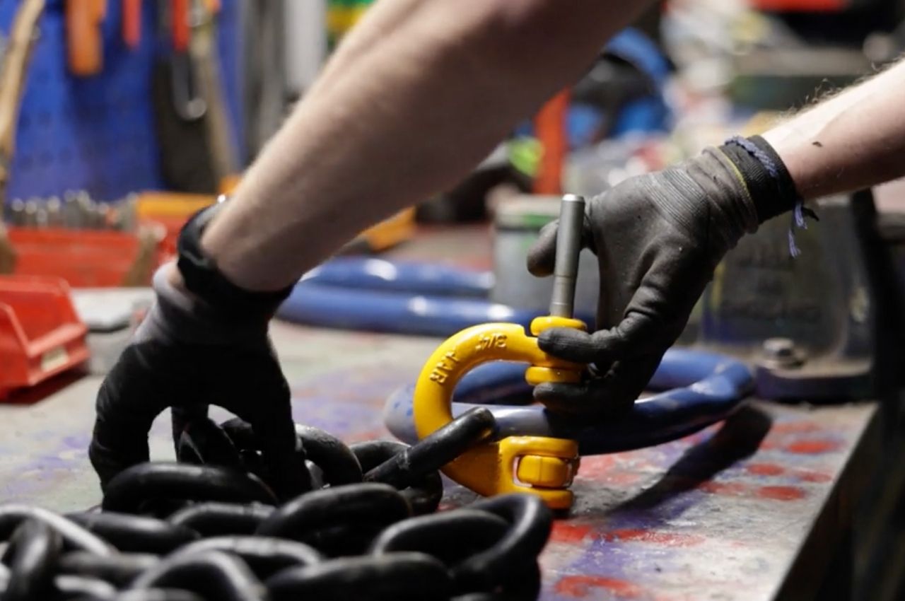 Vårt mobile team utfører blant annet spoling, kontroll og støp av wire direkte på stedet, mens vårt verksted håndterer produksjon, godkjenning og resertifisering av løfteutstyr.